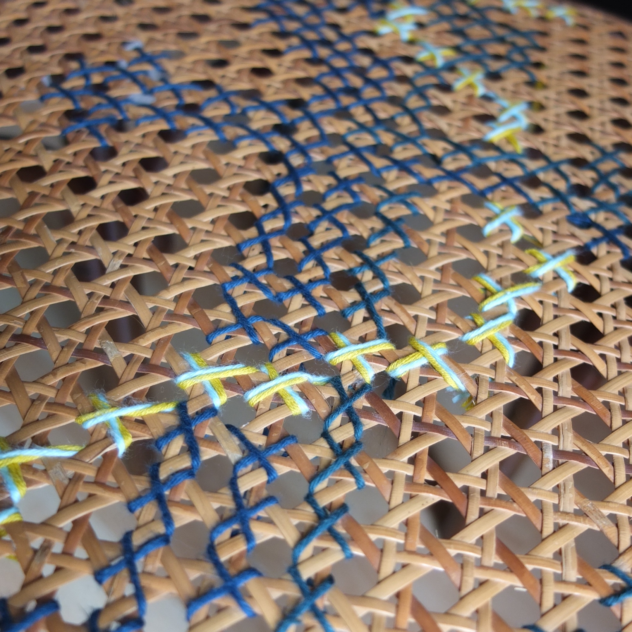 L’assise en cannage est en bon état et a été brodé avec du fil dmc retors mat. Tres bon état général.