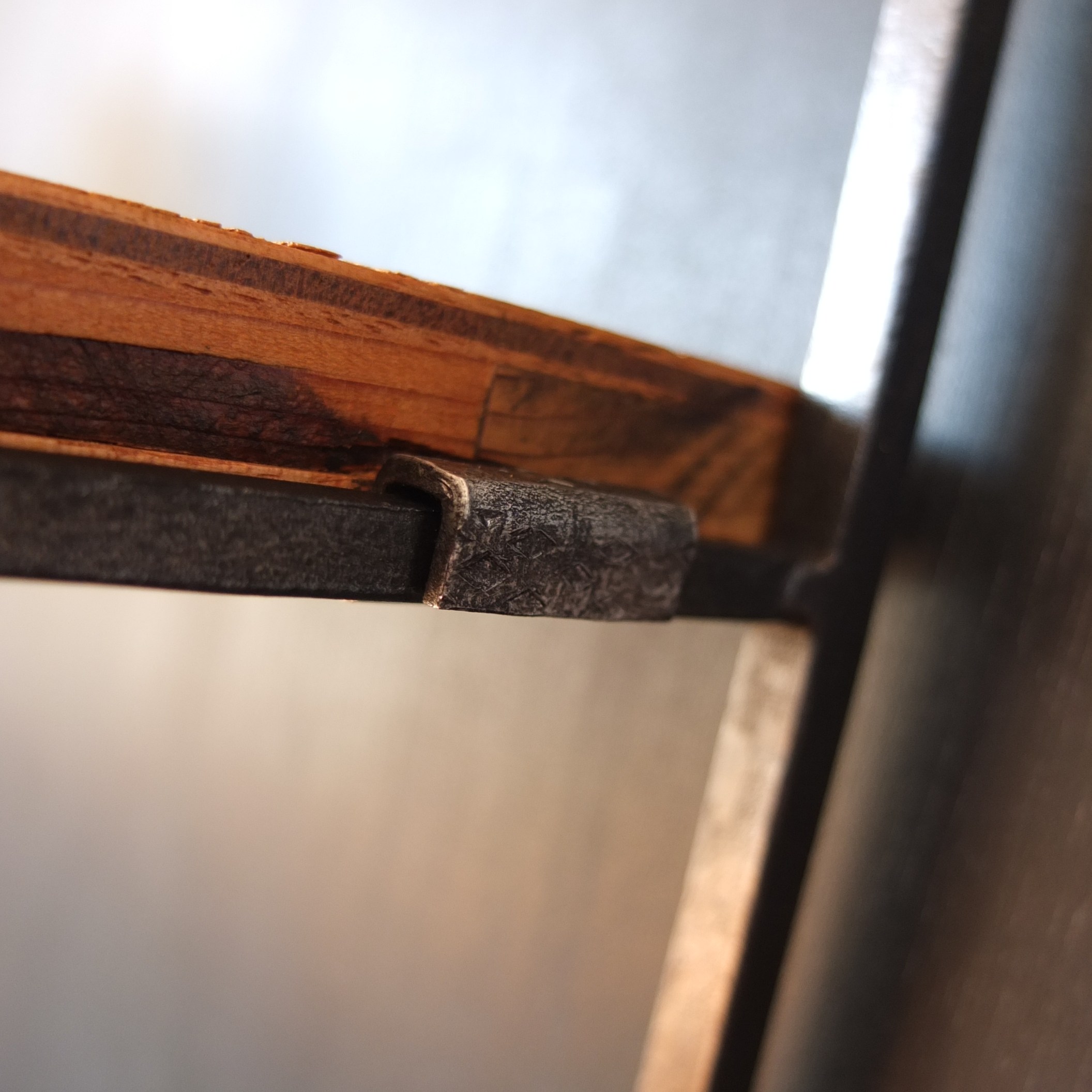 Les montants en acier de section carrée ont été décapés et traités avec une finition canon de fusil.